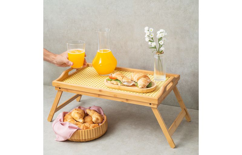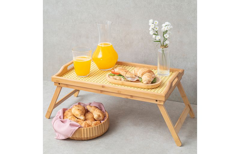 "conheça a bandeja de cama bambu palhinha 50cm - oikos