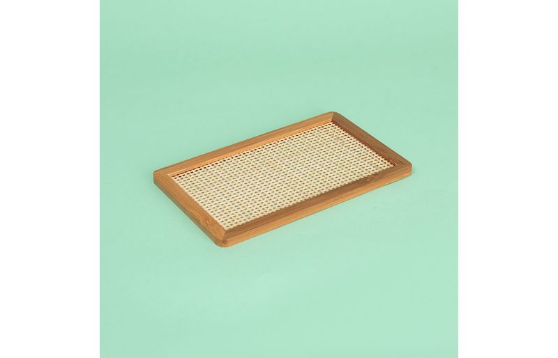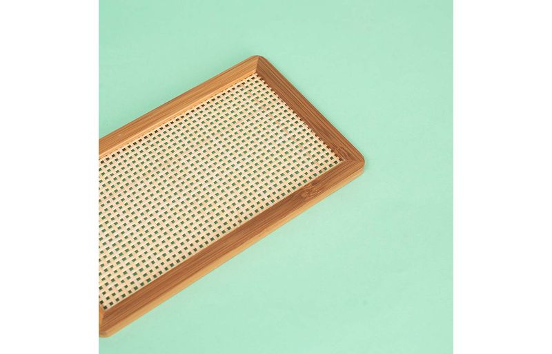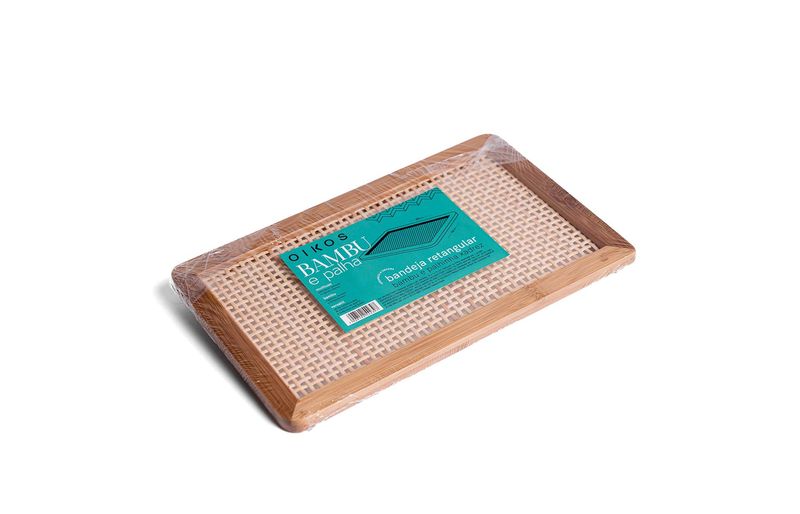 "conheça a bandeja de bambu e textura palhinha xadrez retangular 25cm da oikos!