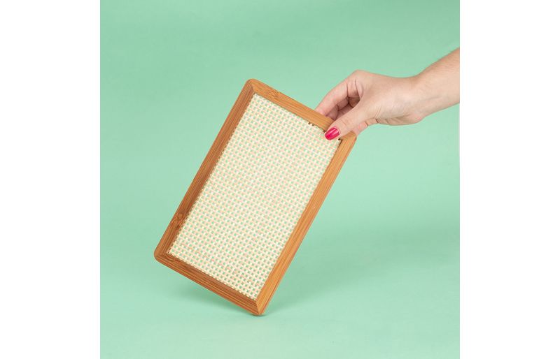 feita de bambu — um material higiênico, antibacteriano e durável — é resistente e fácil de cuidar no dia a dia. seu acabamento em palhinha xadrez tensionada traz um toque atemporal, cheio de estilo e sofisticação.