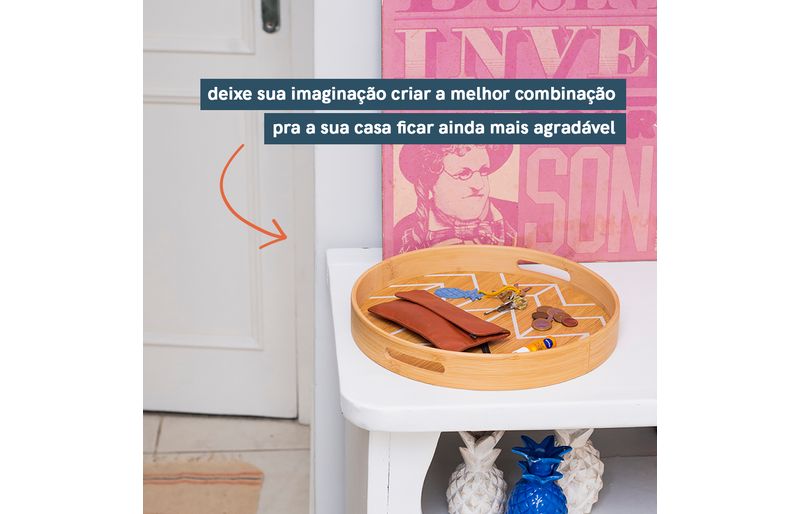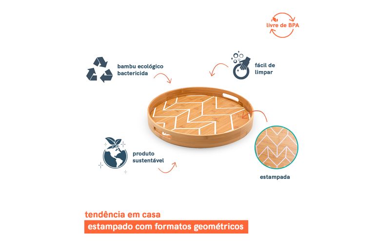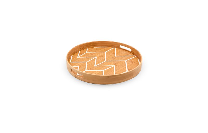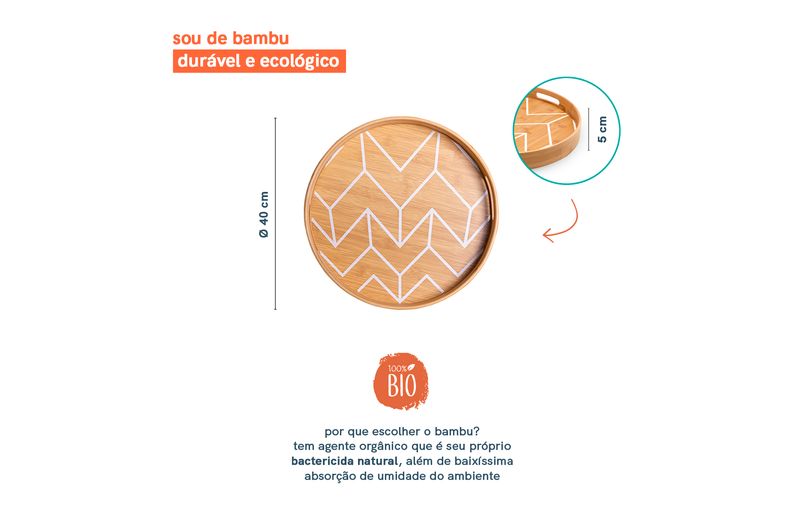 :: essa é a bandeja estampada de bambu redonda 40cm da oikos.