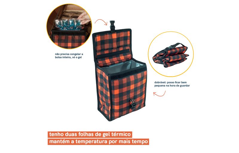 acompanha gel térmico: vem com duas folhas de gel térmico removíveis e reutilizáveis, que ajudam a conservar a temperatura e de uma forma bem higiênica.