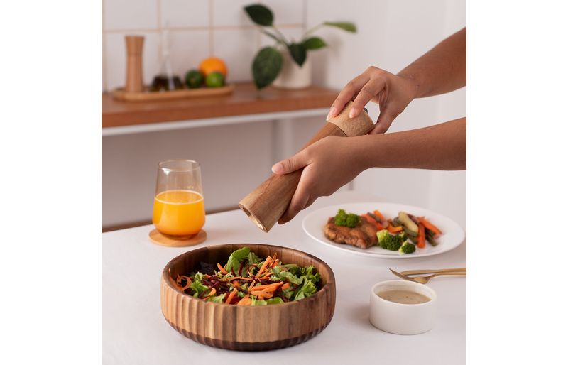 o bowl canelado grande de acácia une beleza, funcionalidade e design atemporal. :)