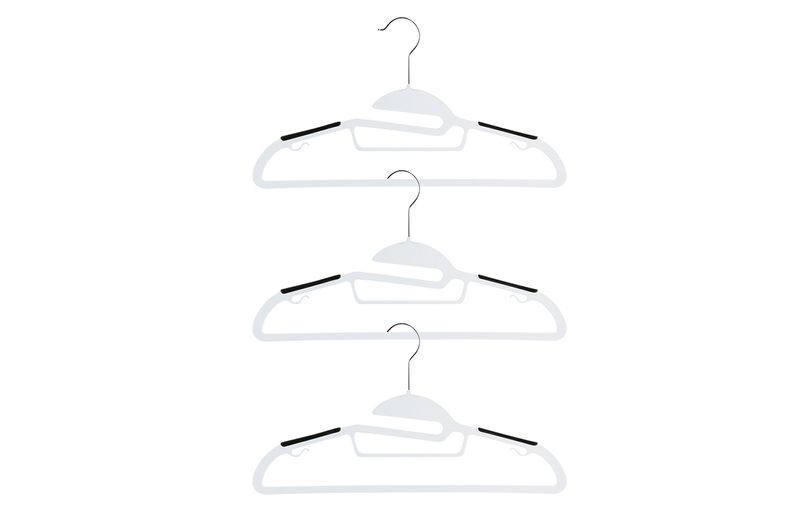 Esse é o cabide jack da oikos. jack vem de “jack of all trades”, mais conhecido como “pau para toda obra” - ou para toda roupa. com o mesmo cabide você pode pendurar várias roupas - e até ao mesmo tempo. mas não é só isso: jack é atencioso, ele tem uma entrada para golas que ajuda a pendurar suas roupas sem perder tempo abrindo botões - e sem esgarçar as golas das camisetas! fininho que só ele, ocupa pouco espaço, deixando seu armário muito mais livre, cabe até na mala de viagem. nas partes coloridas, ele é antideslizante, o que evita que as suas roupas escorreguem. e se colocar as roupas para o lado errado, não tem problema, é só girar o gancho.