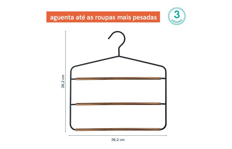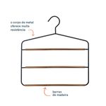 03 unidades do cabide de metal triplo c/ barras de madeira preto acácia oikos