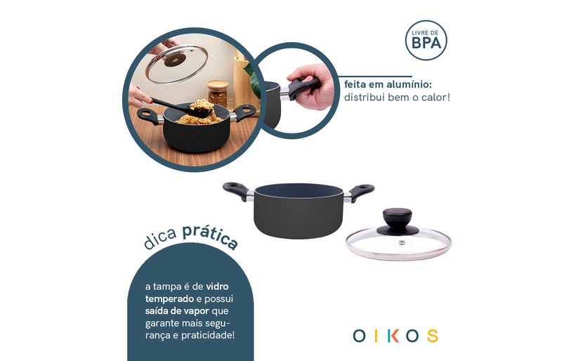 "conheça a caçarola antiaderente de cerâmica 20cm da coleção base da oikos!
