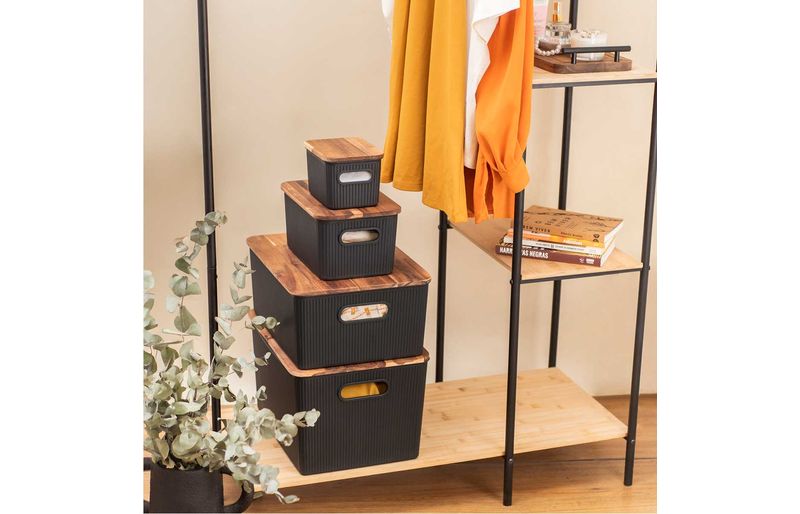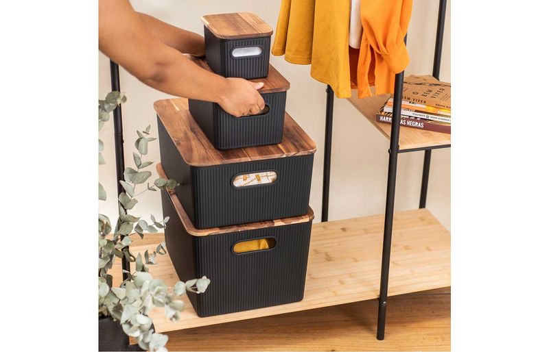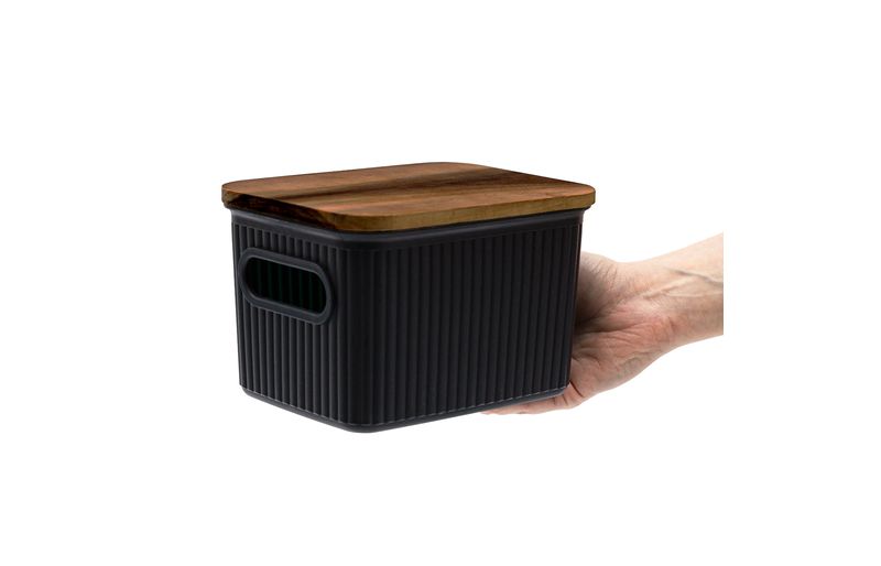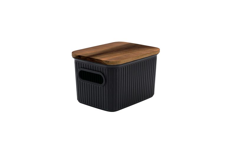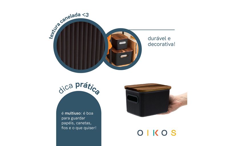 "conheça a caixa organizadora canelada com tampa de acácia 1,5l da oikos!