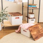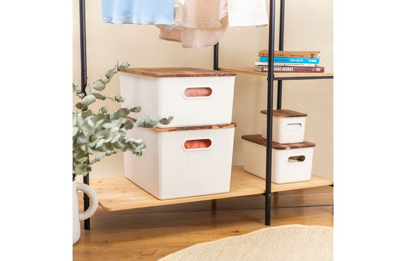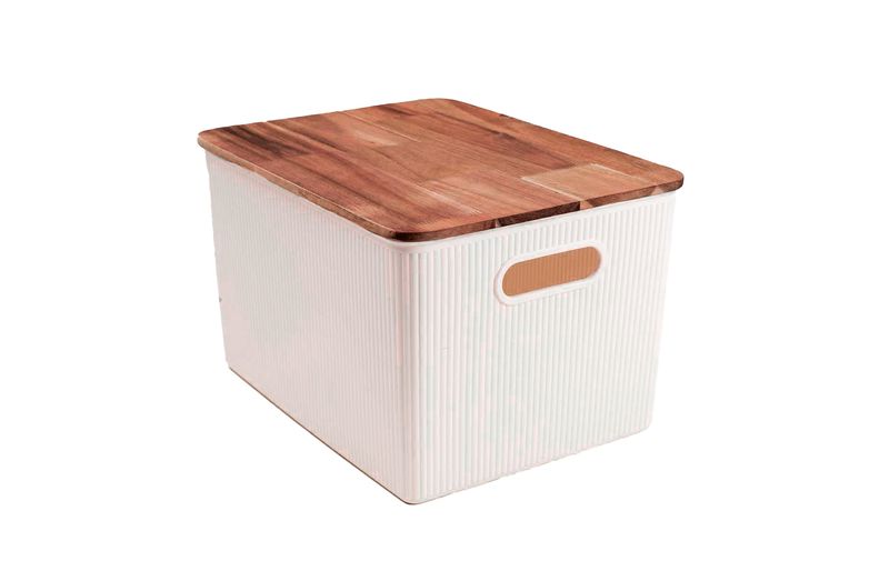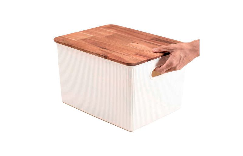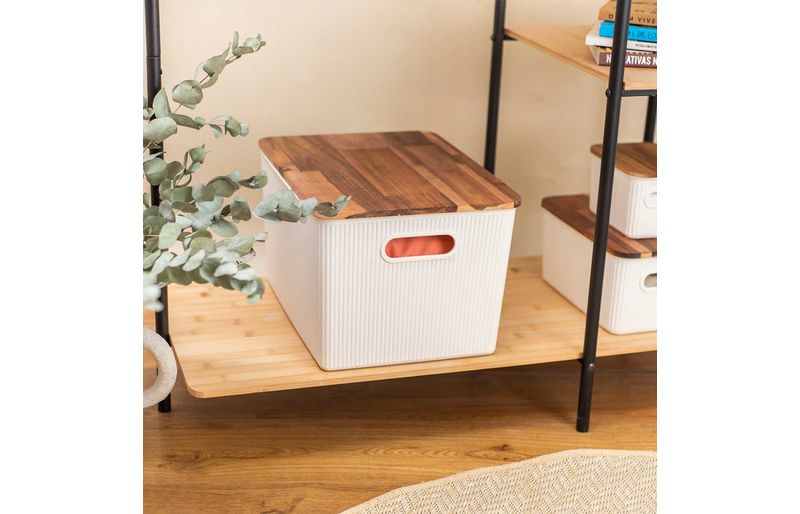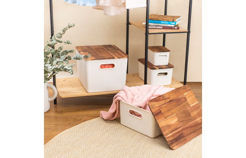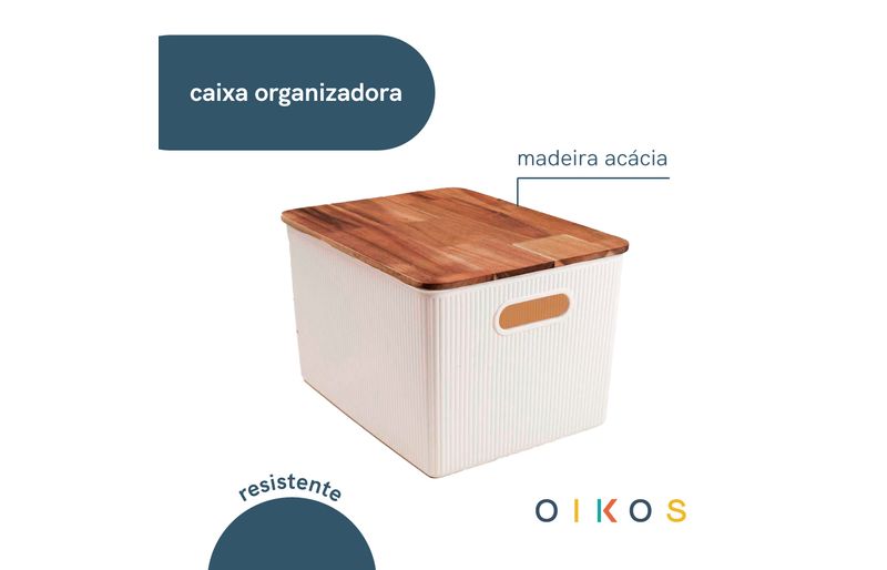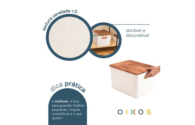 "conheça a caixa organizadora canelada com tampa de acácia 23l da oikos!