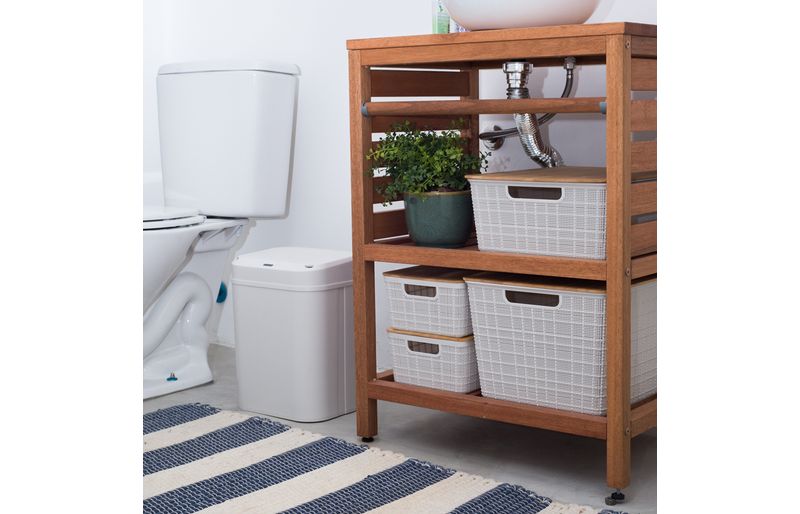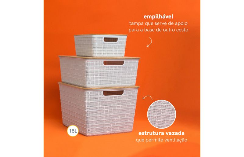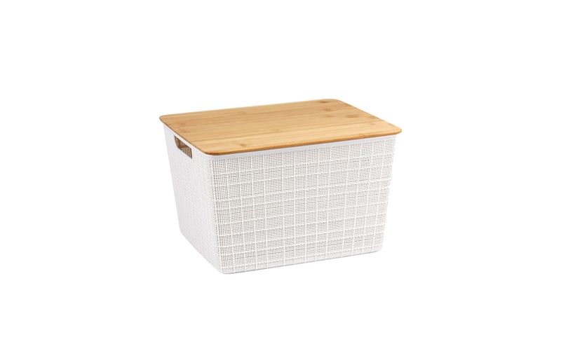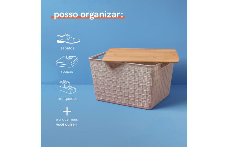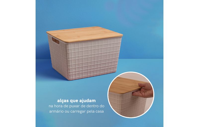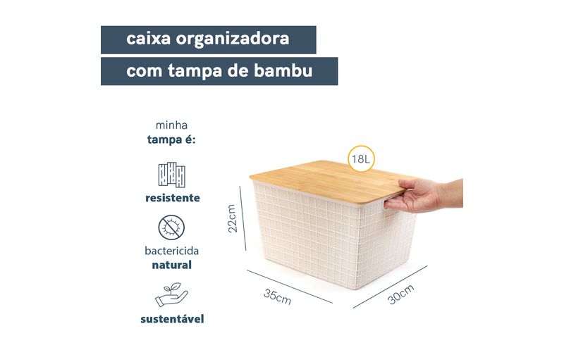 :: essa é a caixa organizadora 18l com tampa de bambu da oikos.