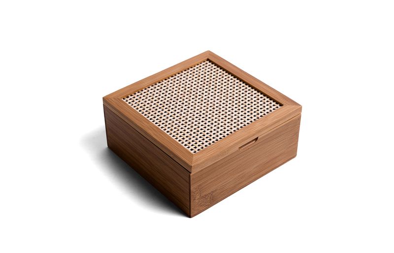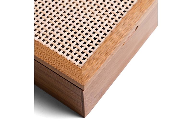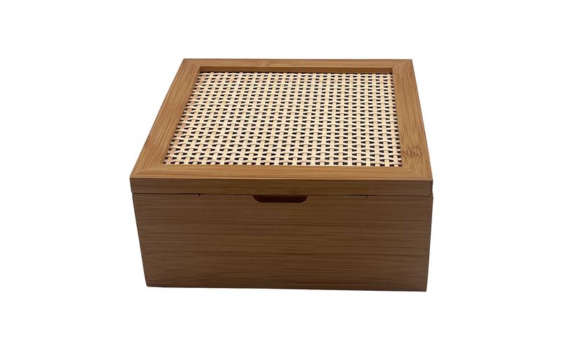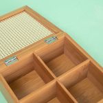 "conheça a caixa decorativa de bambu e textura palhinha xadrez 4 nichos da oikos!