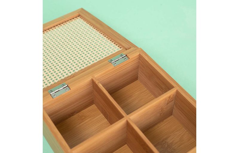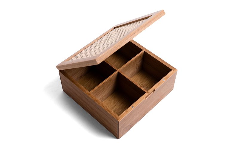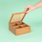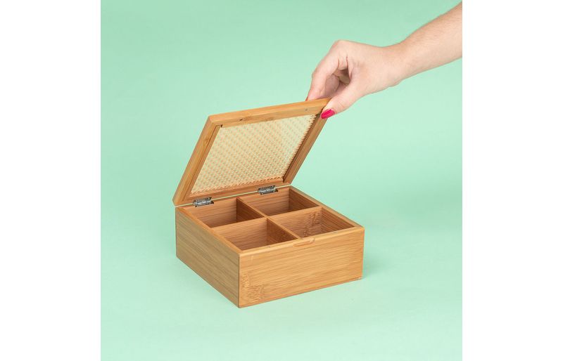 prática e moderna, é ideal para guardar chás, especiarias, doces, acessórios e o que mais você quiser! possui 4 divisórias que permitem separar e organizar melhor os acessórios.