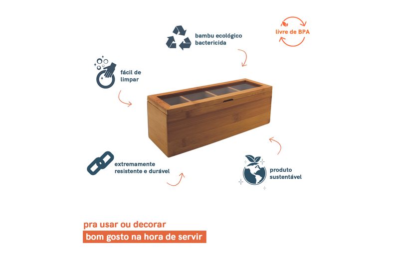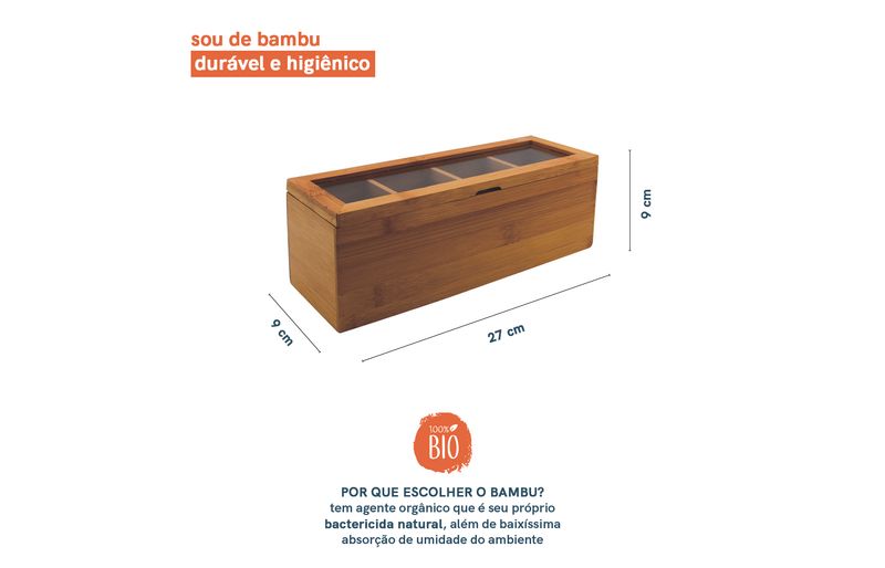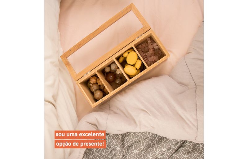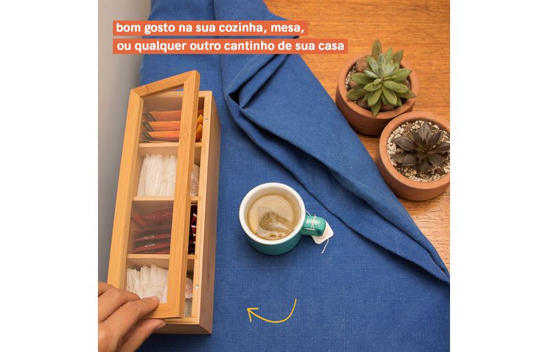 "conheça a caixa organizadora porta chá com divisórias da oikos!