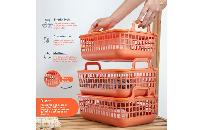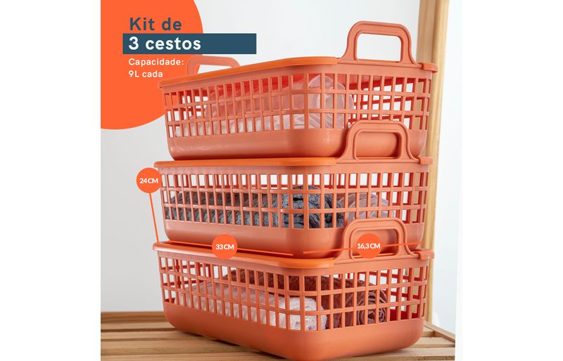 Esse é o kit 3 cestos telado multiuso 9l terracota - oikos