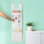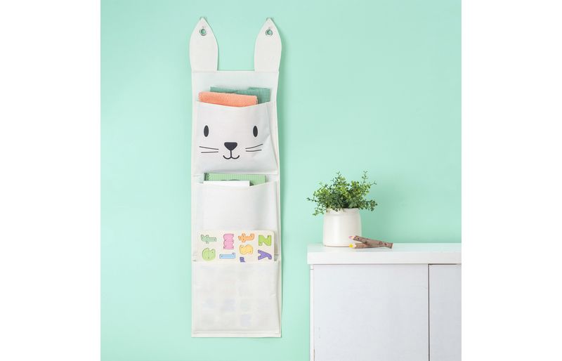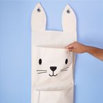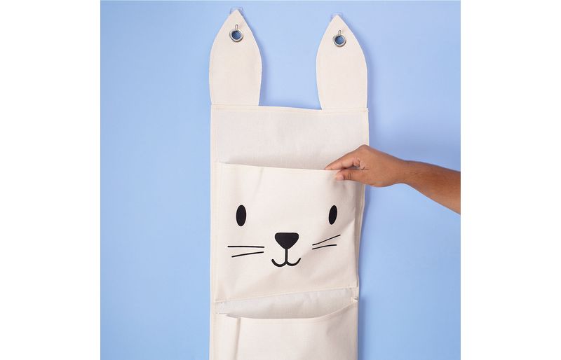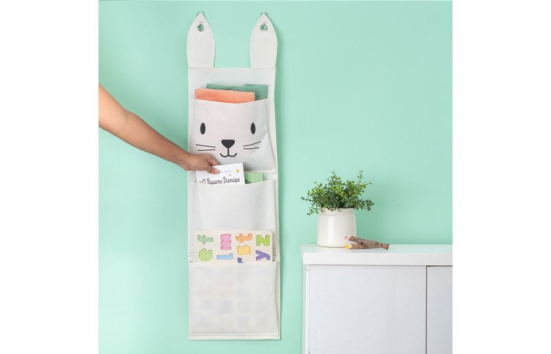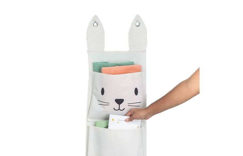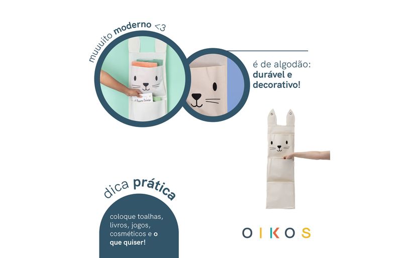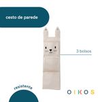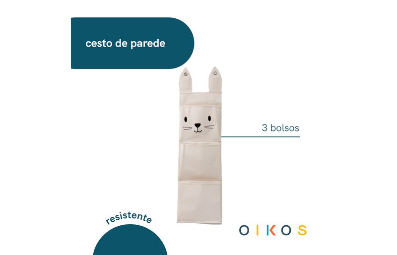 "conheça o cesto de parede 3 bolsos coelho de algodão da oikos!