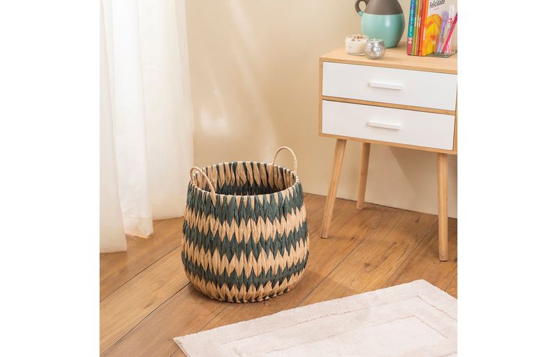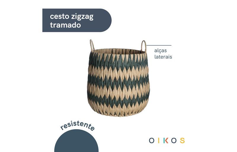 "conheça o cesto zig zag tramado com alças 31cm de corda da oikos!