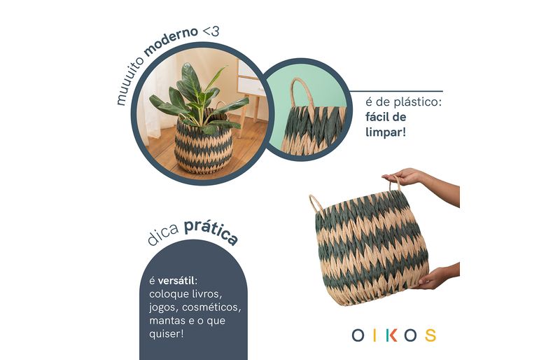 é fácil de carregar: as alças facilitam o manuseio e transporte pela casa. além disso, é decorativo: harmoniza com diversos estilos de decoração!