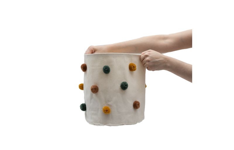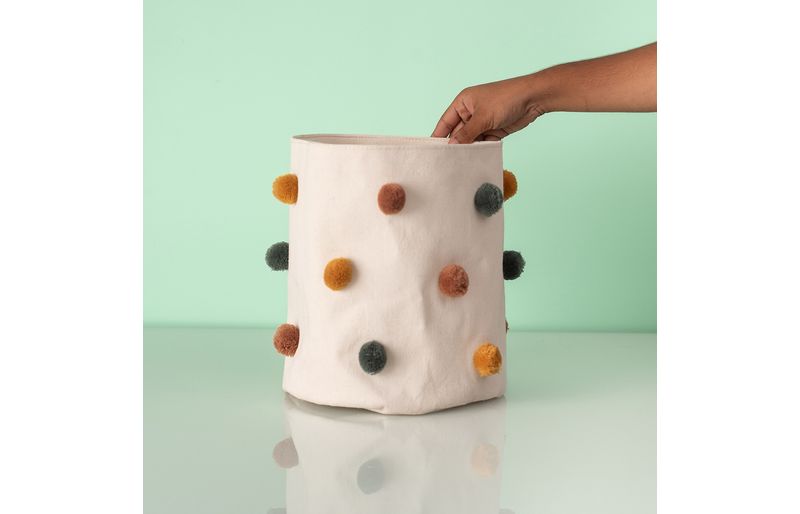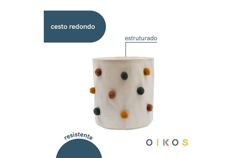 "conheça o cesto organizador redondo de pompons 25cm da oikos.
