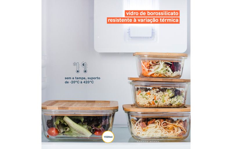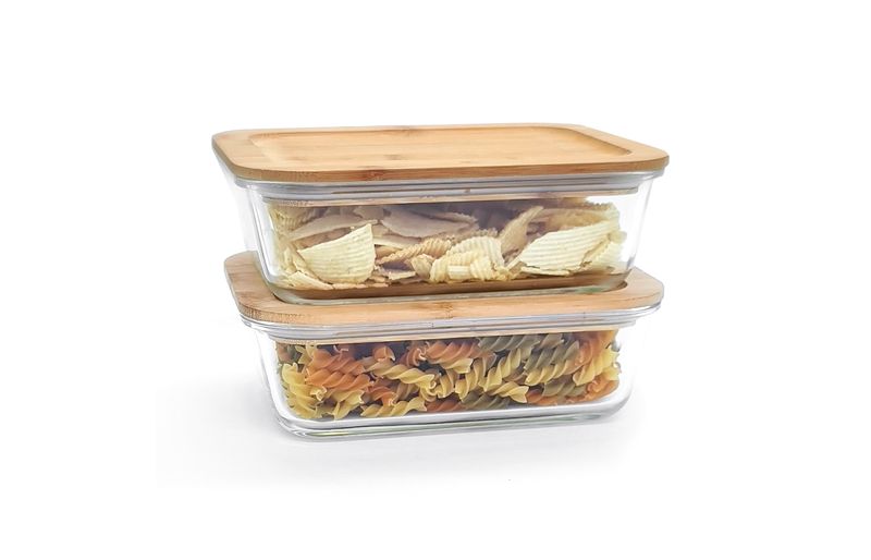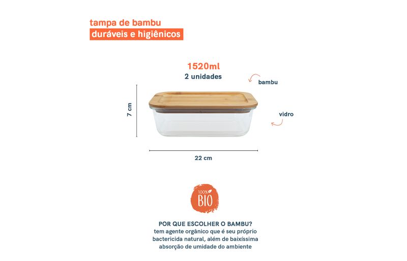 Conjunto 2 potes vidro herméticos c/ tampa de bambu - oikos
