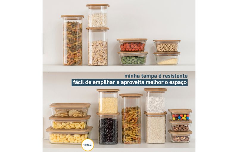 potes e mais potespotes com tampa de bambuConjunto 2 potes vidro herméticos c/ tampa de bambu - oikos