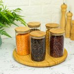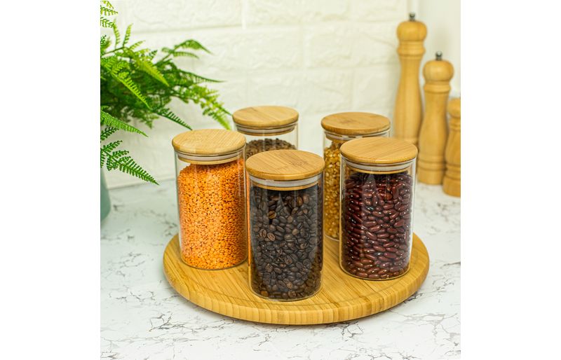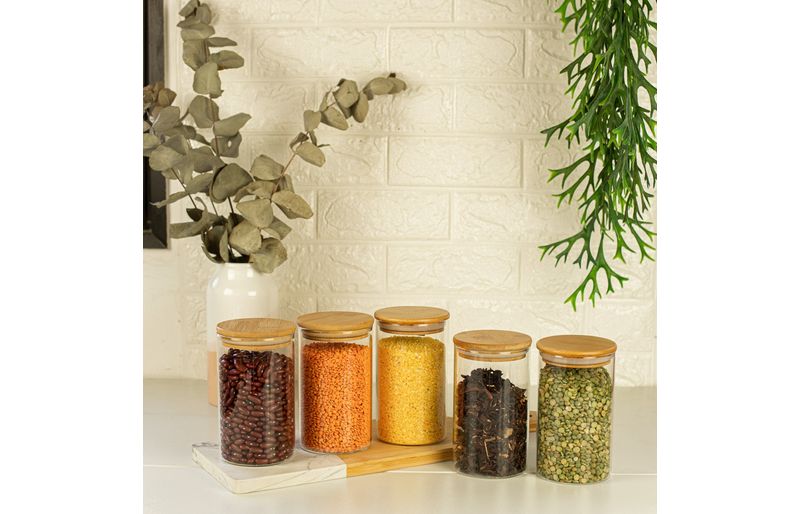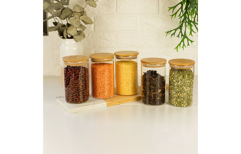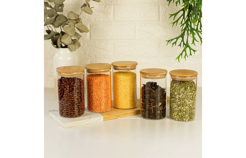5 unidades - pote de mantimentos de 600ml com tampa de bambu – oikos