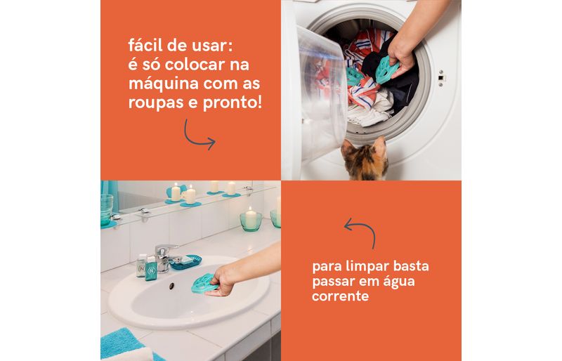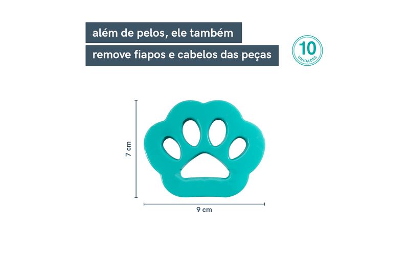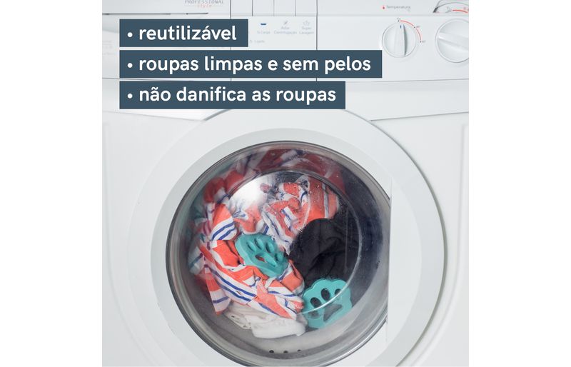 além de pelos, ele também remove fiapos e cabelos das peças. bem fácil de usar, é só colocá-lo na máquina de lavar junto com as roupas, sendo necessário apenas 1 removedor para cada pet na casa.