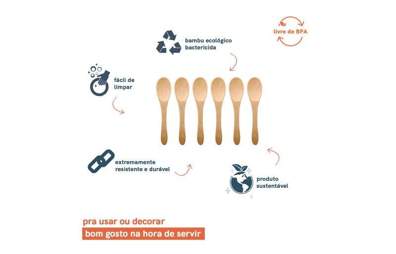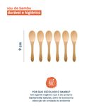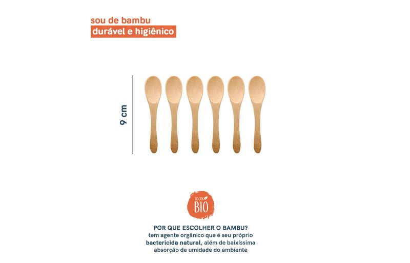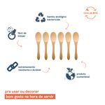 Essa é o conjunto de 6 mini colheres de bambu da oikos. bem bacana para receber amigos em casa e pegar porções de pastinhas, patês, mel e até comida para criança. com um design que vai na mesa, confere um toque rústico na composição, provocado pelo seu tom natural. higiênico, esse conjunto carrega as propriedades antibactericidas do bambu, só precisa lavar e secar de acordo com as recomendações, combinado?