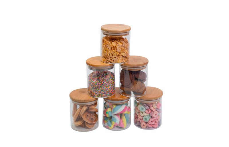 6 unidades do pote de mantimentos de 400ml com tampa de bambu – oikos