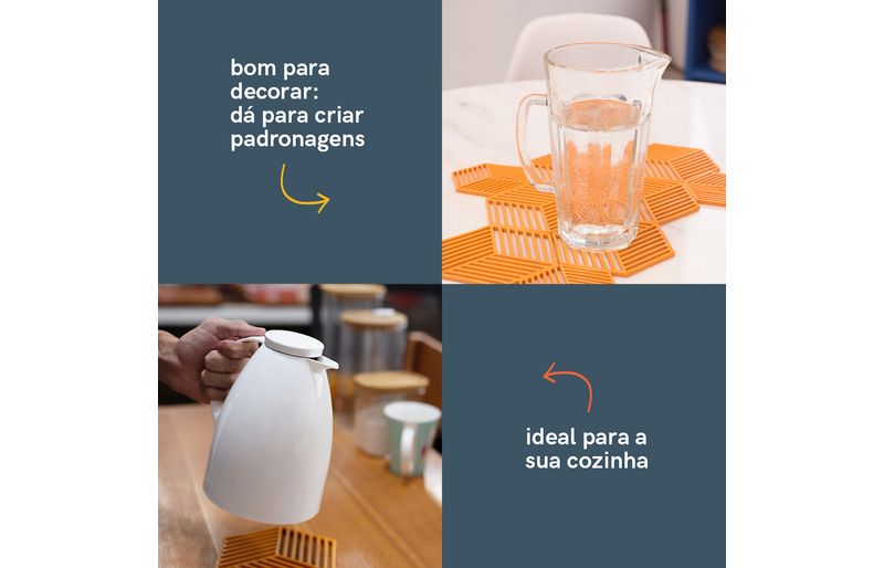 Esse é o kit de porta copos e descansos para panelas da oikos.