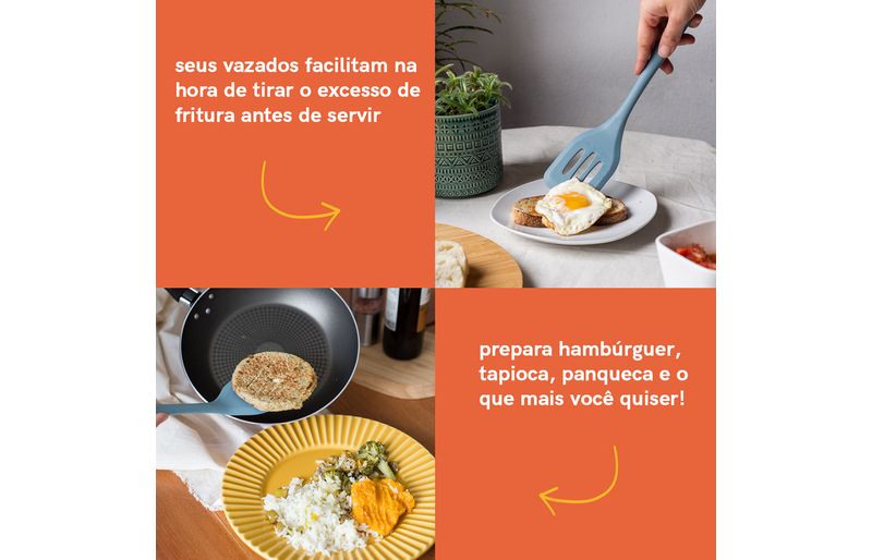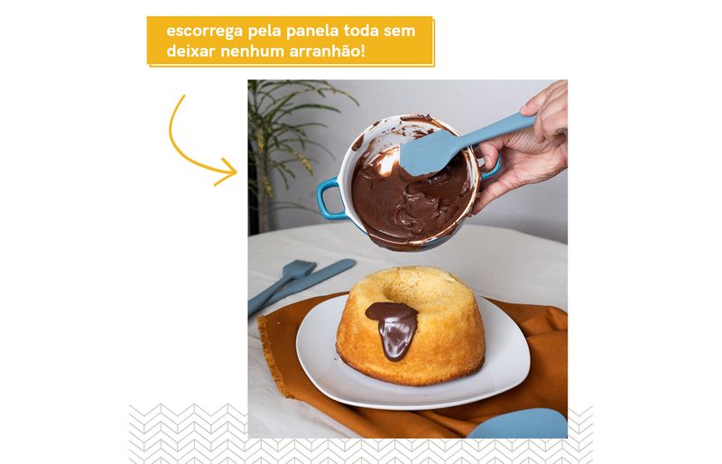 por isso gostamos muito de utensílios de silicone para o preparo de alimentos, ele escorrega pela panela toda sem deixar nenhum arranhão!