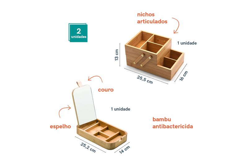 "esse é o conjunto da caixa multiuso com divisórias e a caixa organizadora com espelho da oikos.