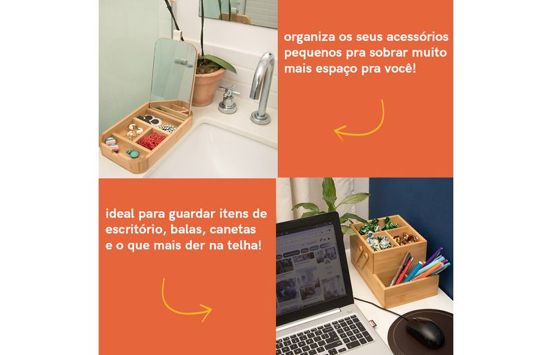 tudo em seu lugar: as divisórias permitem separar e organizar melhor os objetos. fica muito mais fácil achar aquele brinco na correria.