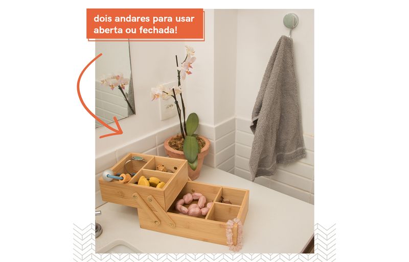 1 unidade - caixa organizadora em bambu 2 andares – oikos