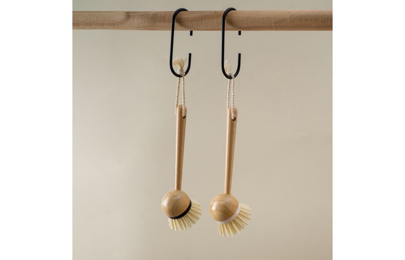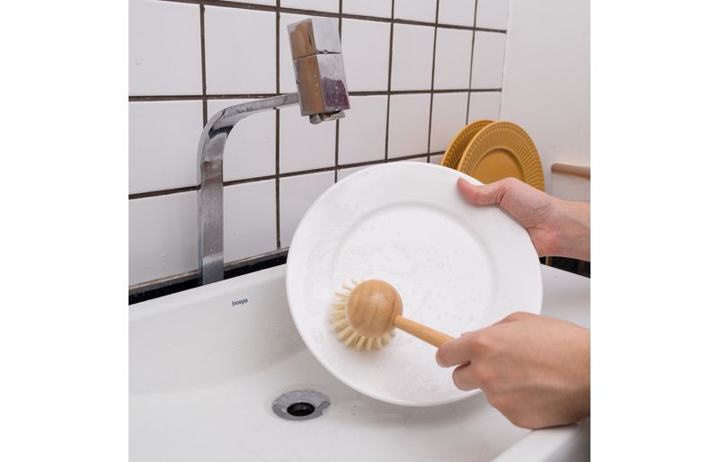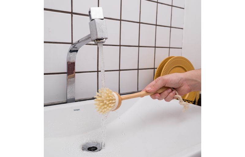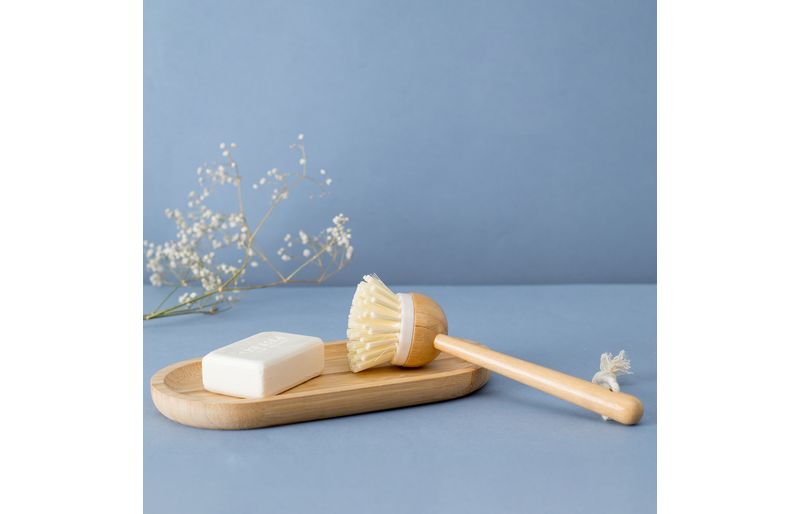 :: essa ã© a escova de limpeza redonda com cabo de bambu da oikos.
