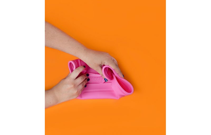 é de silicone: muito resistente e durável! para limpar, basta lavar em água corrente com detergente.