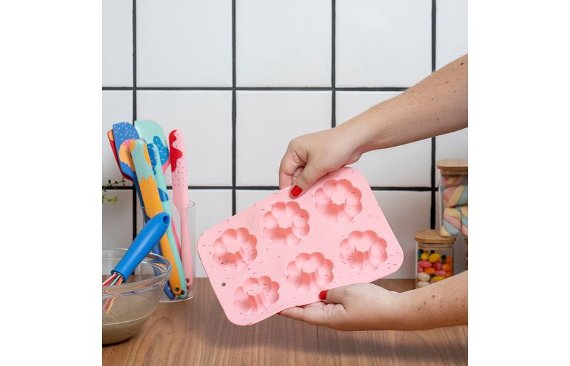 cozinha práticaformas de siliconeForma de silicone para bolinho flor - oikos