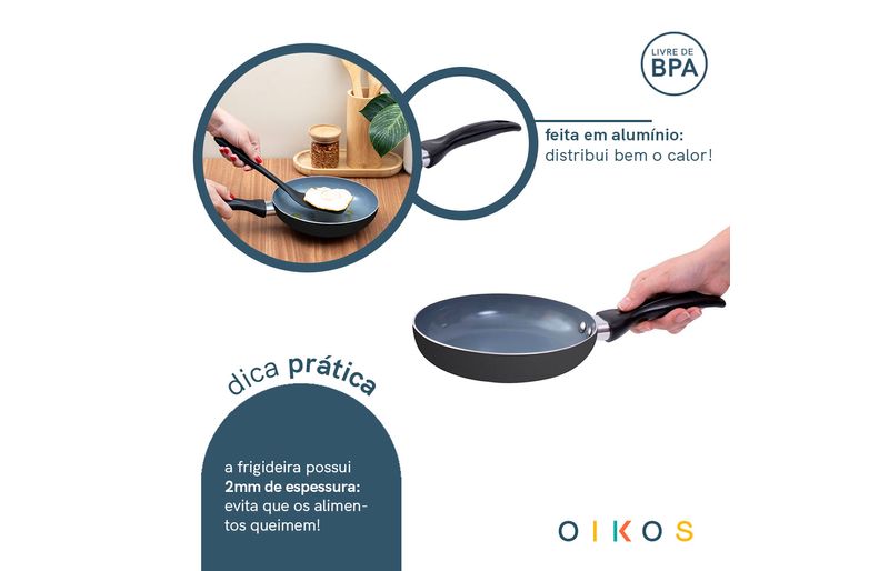 "conheça a frigideira antiaderente de cerâmica 18cm da coleção base da oikos!