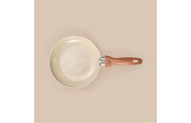antiaderente, com alta qualidade e design moderno, é ótima para fazer suas receitas favoritas sem perigo de grudar alimentos ou ingerir substâncias tóxicas. a combinação de cores em tons terrosos com acabamento fosco harmonizam com a decoração da cozinha e levam charme ao ambiente!