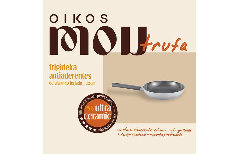 "conheça a frigideira antiaderente ultra ceramic indução mou trufa 20cm da oikos!