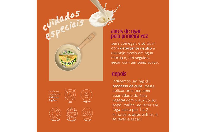 processo de cura indicado: basta aplicar uma pequena quantidade de óleo vegetal com o auxílio do papel toalha, aquecer em fogo baixo por 1 a 2 minutos e, após esfriar, é só lavar e secar!