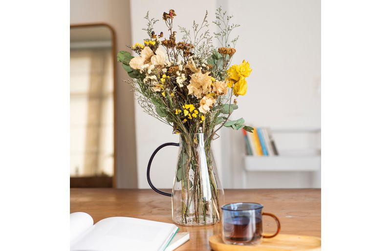 "essa é a jarra de vidro com tampa de bambu 1,8l da oikos.