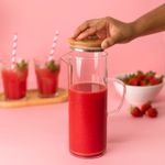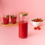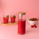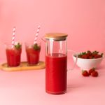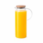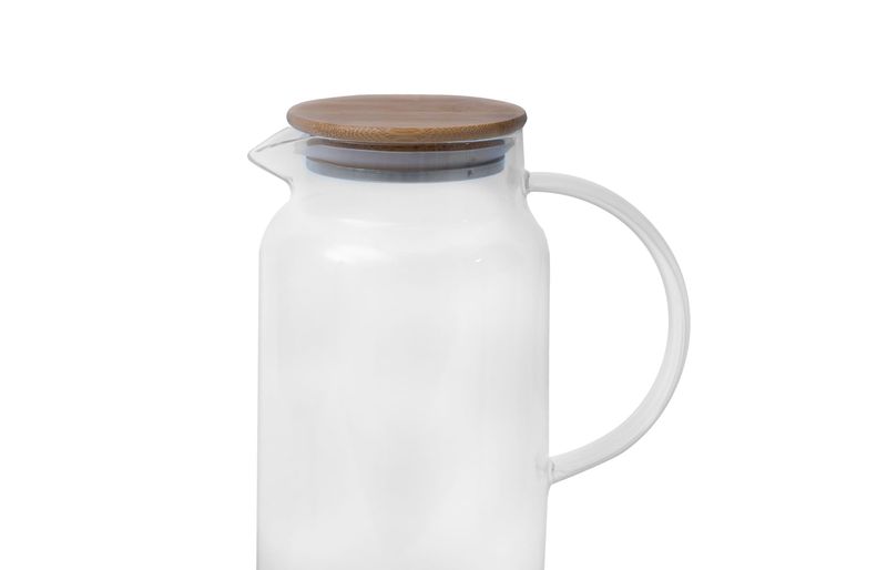 "essa é a jarra de vidro com tampa de bambu 2l da oikos.