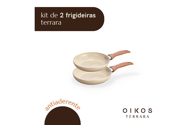 "conheça o kit com 2 frigideiras antiaderentes da coleção terrara da oikos!