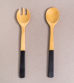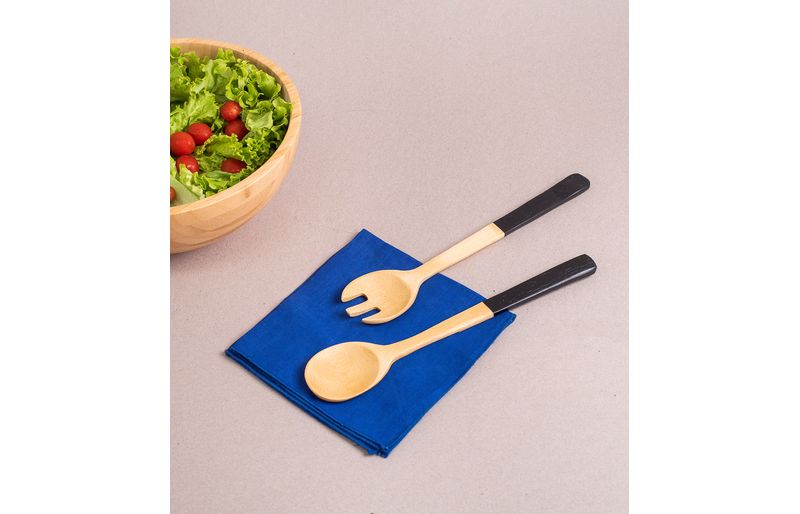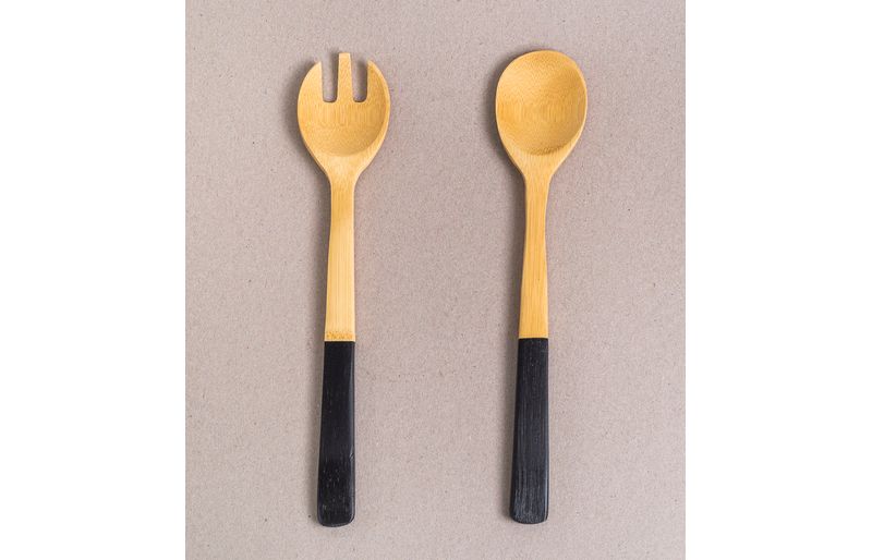 :: esse ã© o conjunto de pegadores de salada de bambu com cabo preto da oikos.