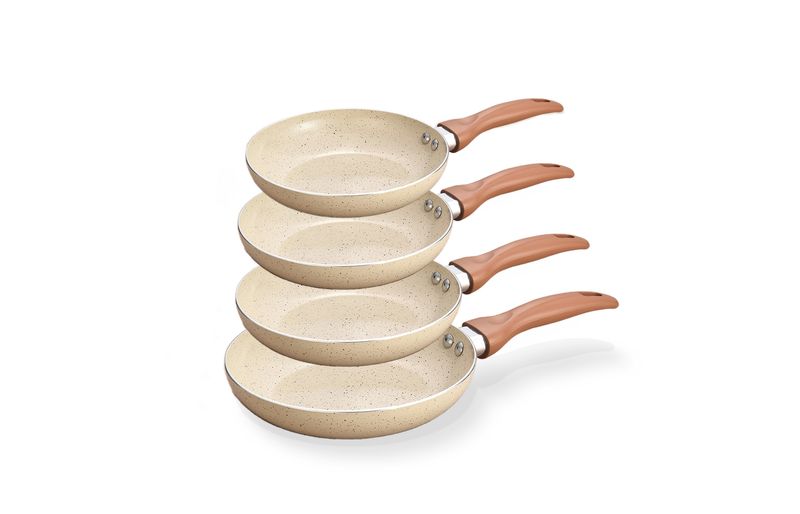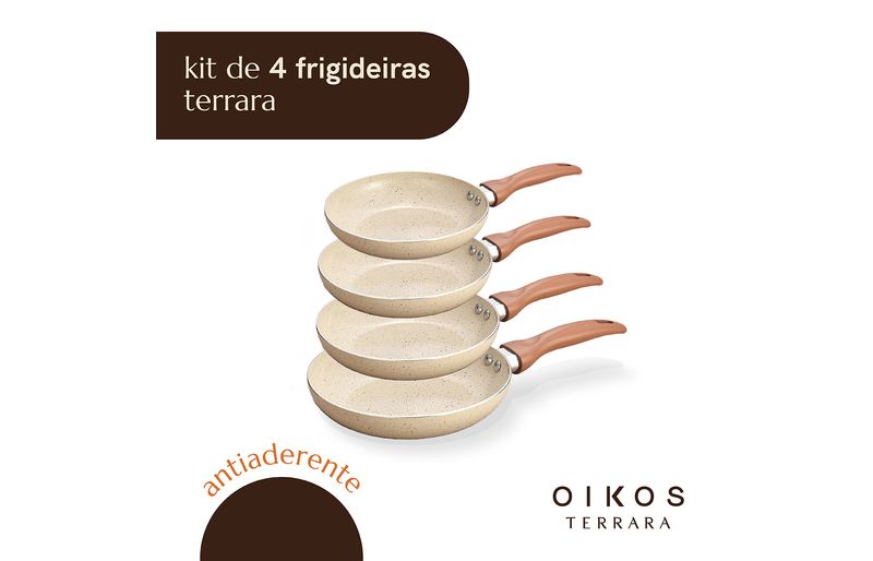 "conheça o kit com 4 frigideiras antiaderentes da coleção terrara da oikos!
