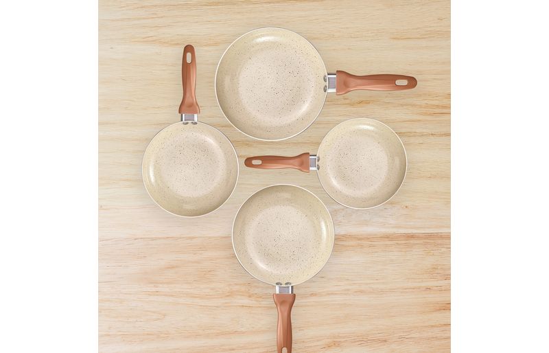 antiaderentes, com alta qualidade e design moderno, são ótimas para fazer suas receitas favoritas sem perigo de grudar alimentos ou ingerir substâncias tóxicas. a combinação de cores em tons terrosos com acabamento fosco harmonizam com a decoração da cozinha e levam charme ao ambiente!