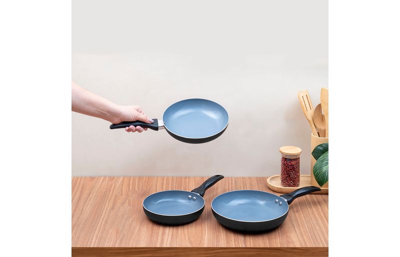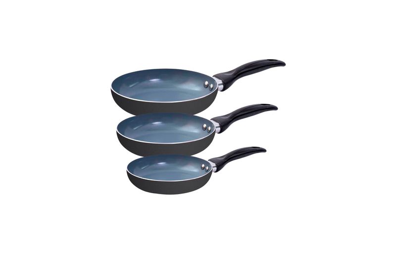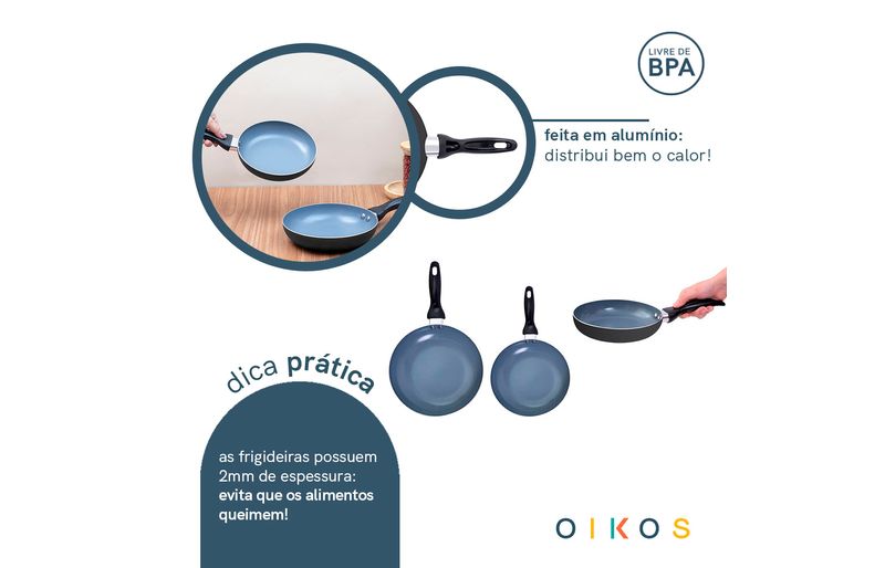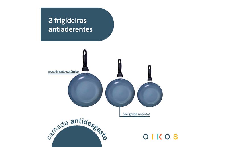 "conheça o jogo de frigideiras 3 pçs antiaderentes de cerâmica da coleção base da oikos!