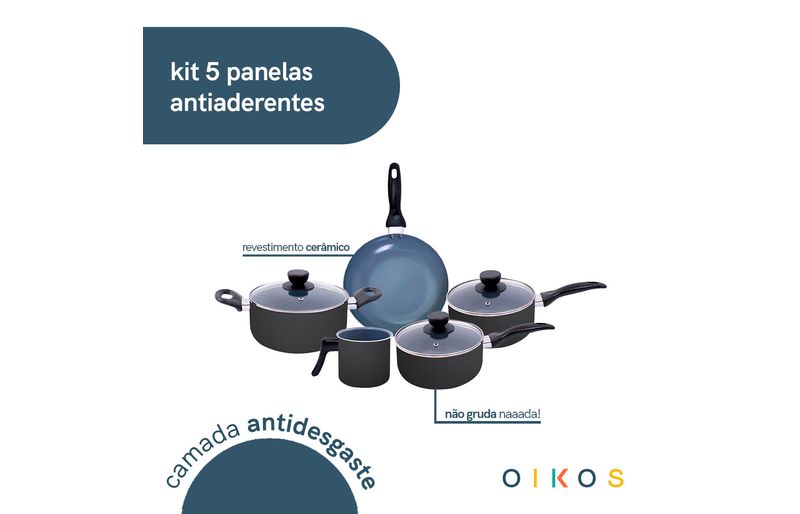 "conheça o jogo de panelas 5 pçs antiaderentes de cerâmica da coleção base da oikos!