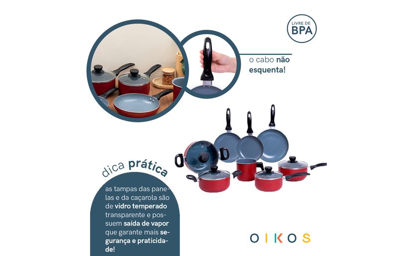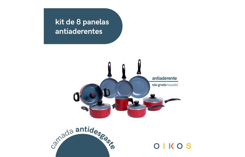 Conheça o kit de 8 panelas antiaderentes da coleção base da oikos!