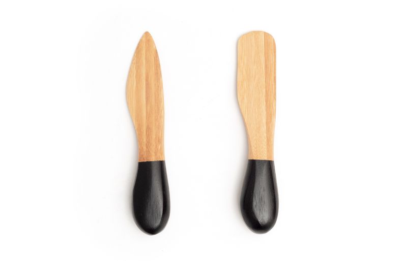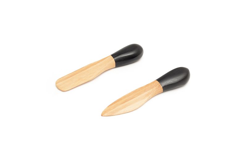 2 peças: conjunto com 2 facas arredondadas, com acabamentos diferentes. ideais para retirar e espalhar alimentos pastosos.