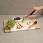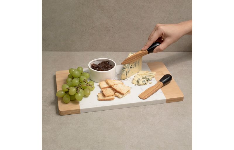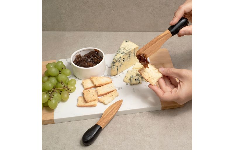 versátil: para servir queijos macios, caponatas, patês, geleias, doces cremosos, molhos densos, entre outros. ah, o conjunto também pode ser usado em diversos momentos, como jantares, festas e happy hours entre amigos!