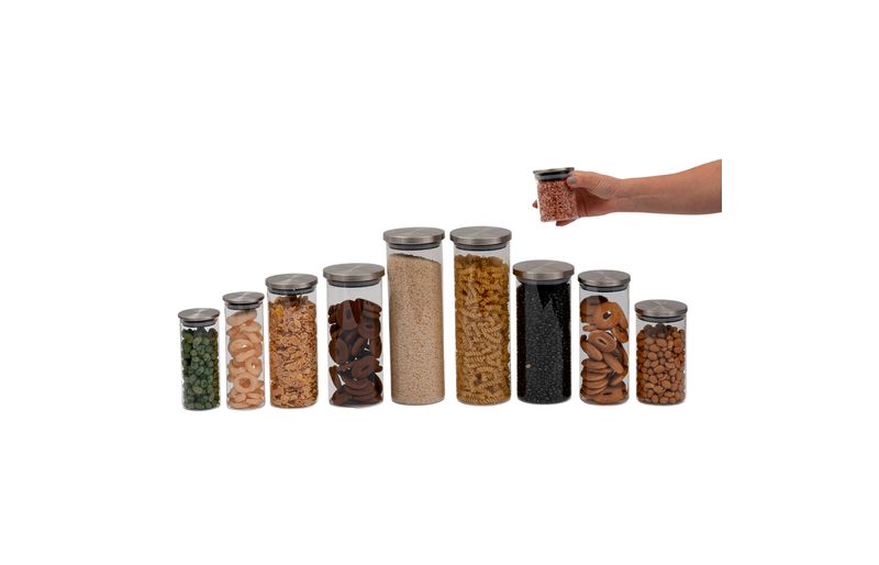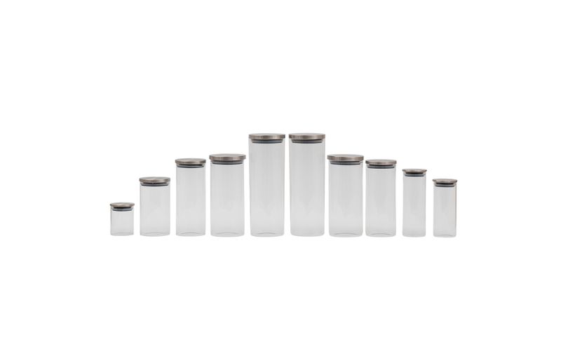 potes e mais potespotes com tampa de inoxKit 10 pote de vidro com tampa de inox redondo mantimento - oikos